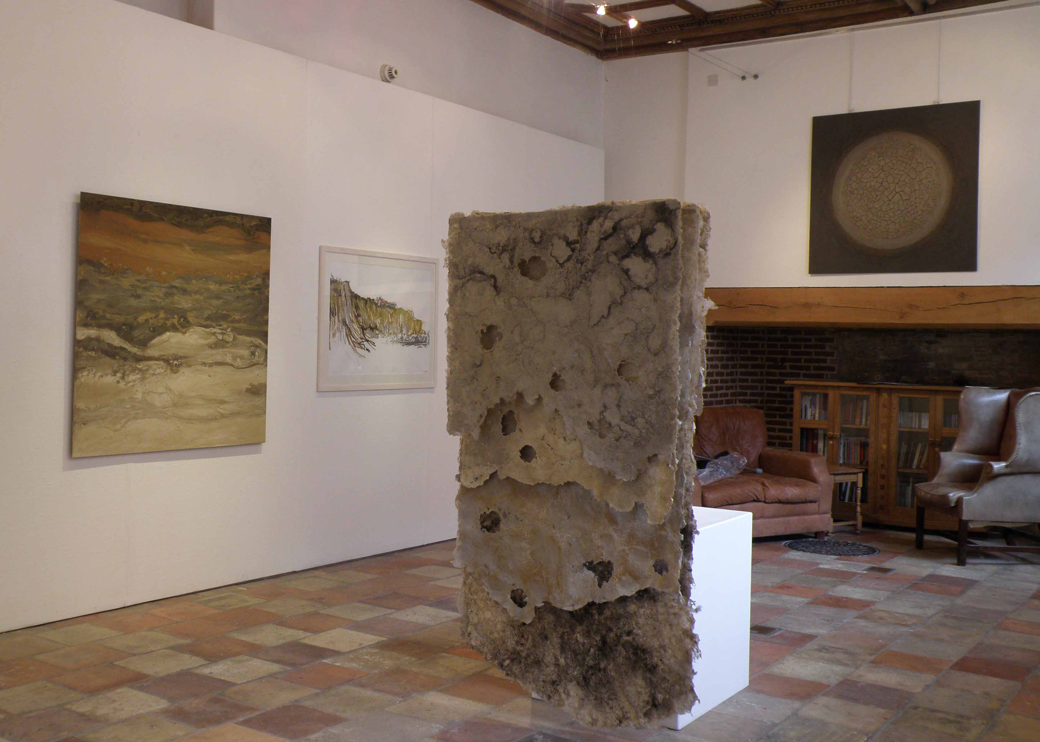 Abrasion was born out of a conversation between artist Malca Schotten and myself on Happisburgh beach on the north Norfolk coast. We had been asked to put together an exhibition for the King of Hearts in Norwich and had discovered a shared interest in Happisburgh, a village which has been slowly disappearing over the cliffs into the North Sea over the past 30 or so years. We wanted to convey the rawness and the physical process of the eroding cliffs, as well as the enormous destructive power of the sea.