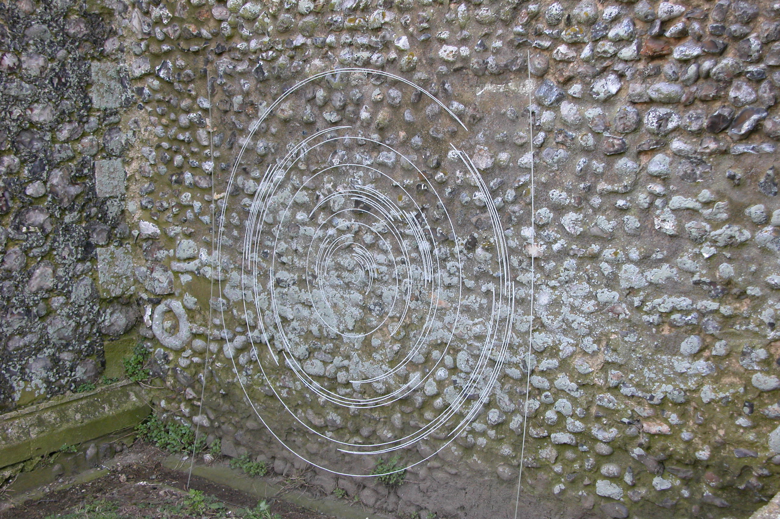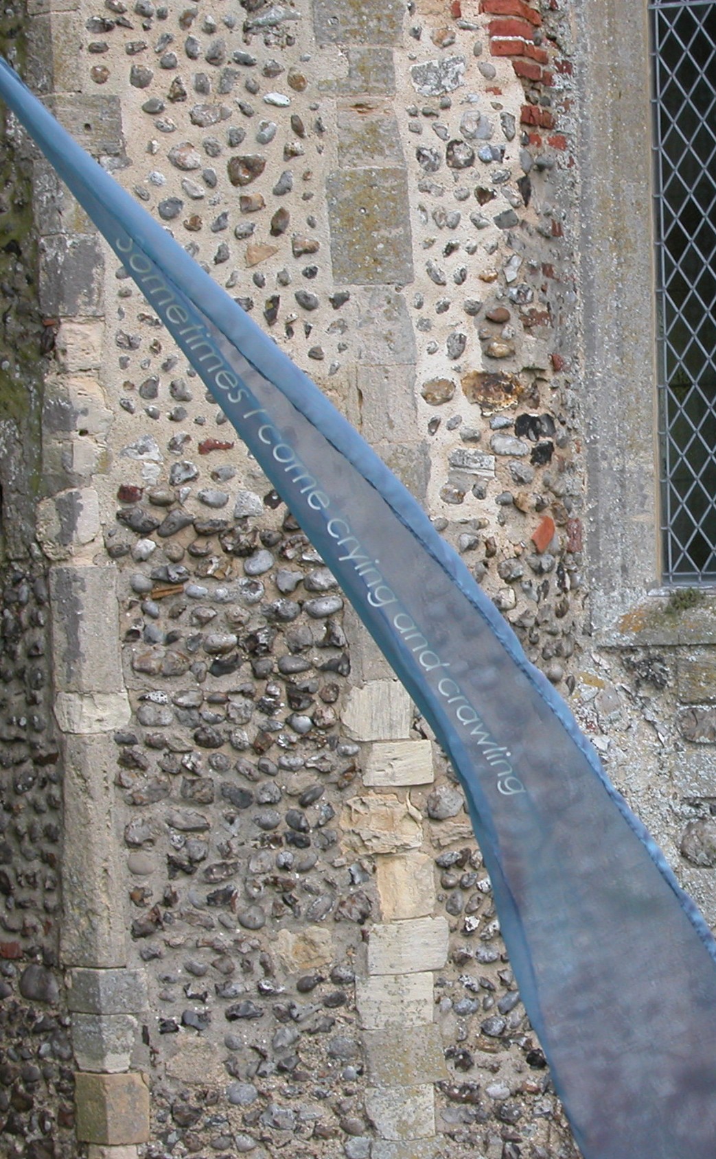 Making visible the invisible, a series of flags were sited around the base of the church, each bearing one line of a riddle written by Hugh Lupton in the voice of the 6th Century bard, Taliesin: