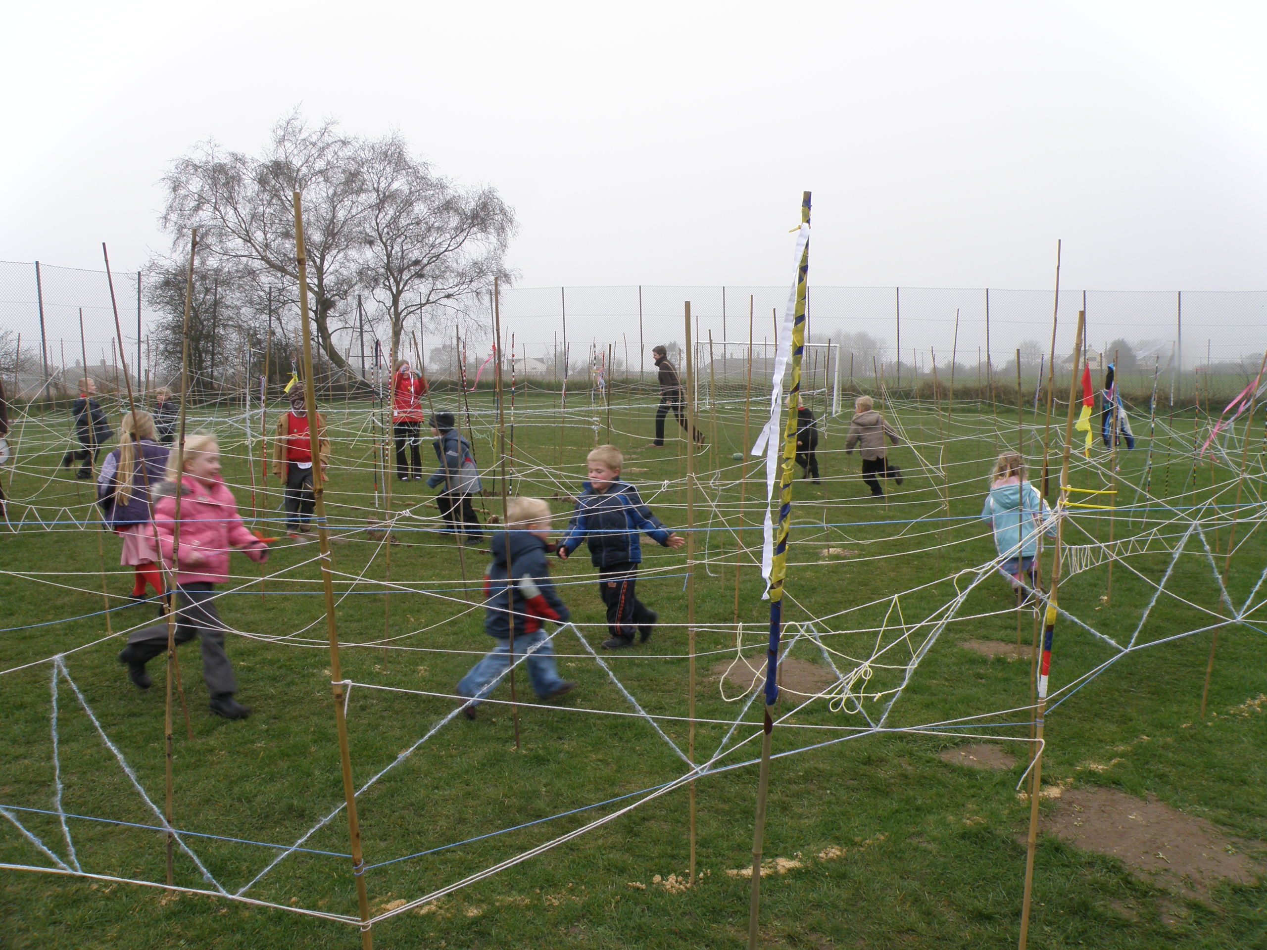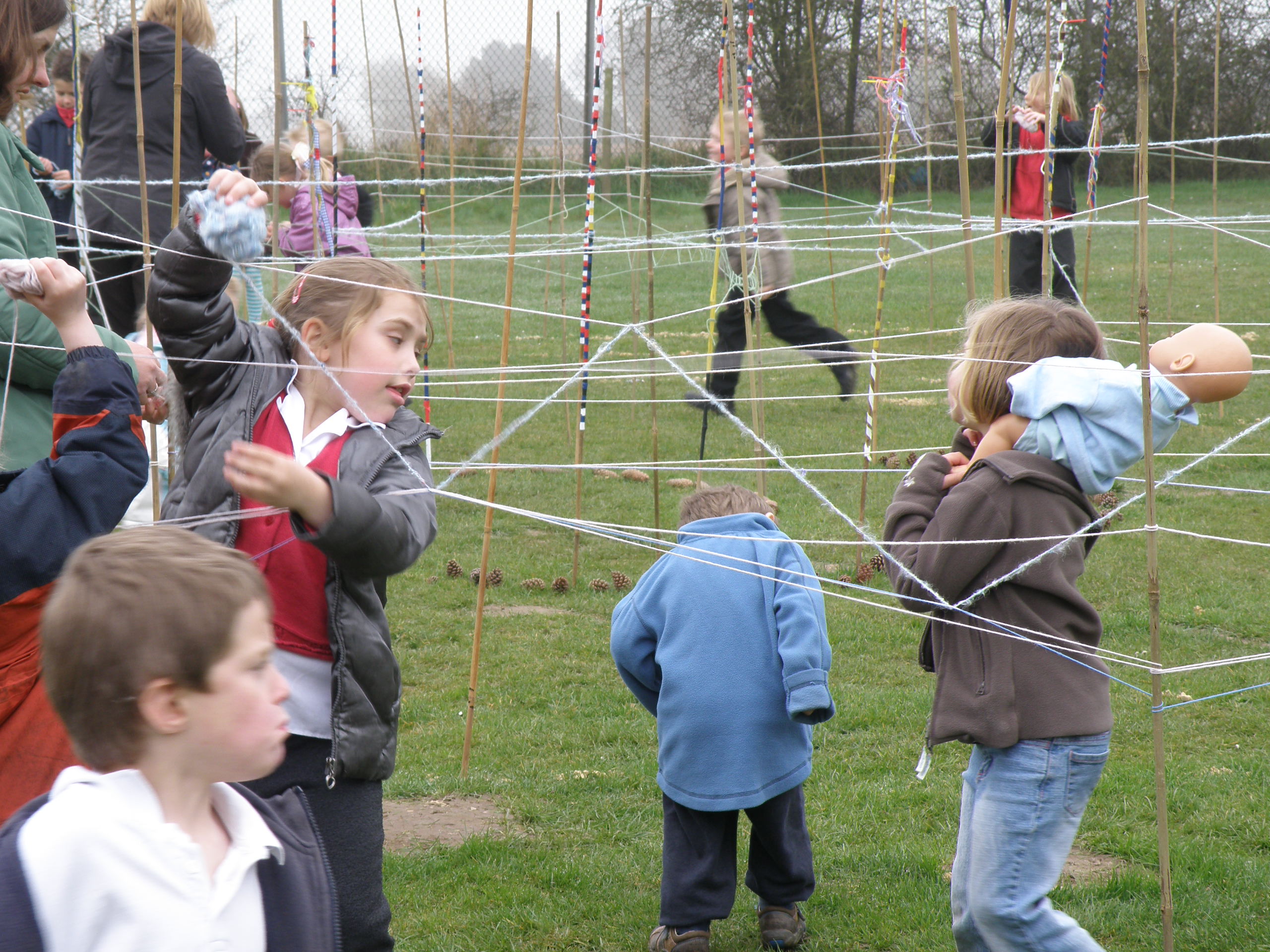 On the final day the children made an alternative pathway through the school grounds using flags, sculptures and labyrinths and invited family and other classes to explore it with them.