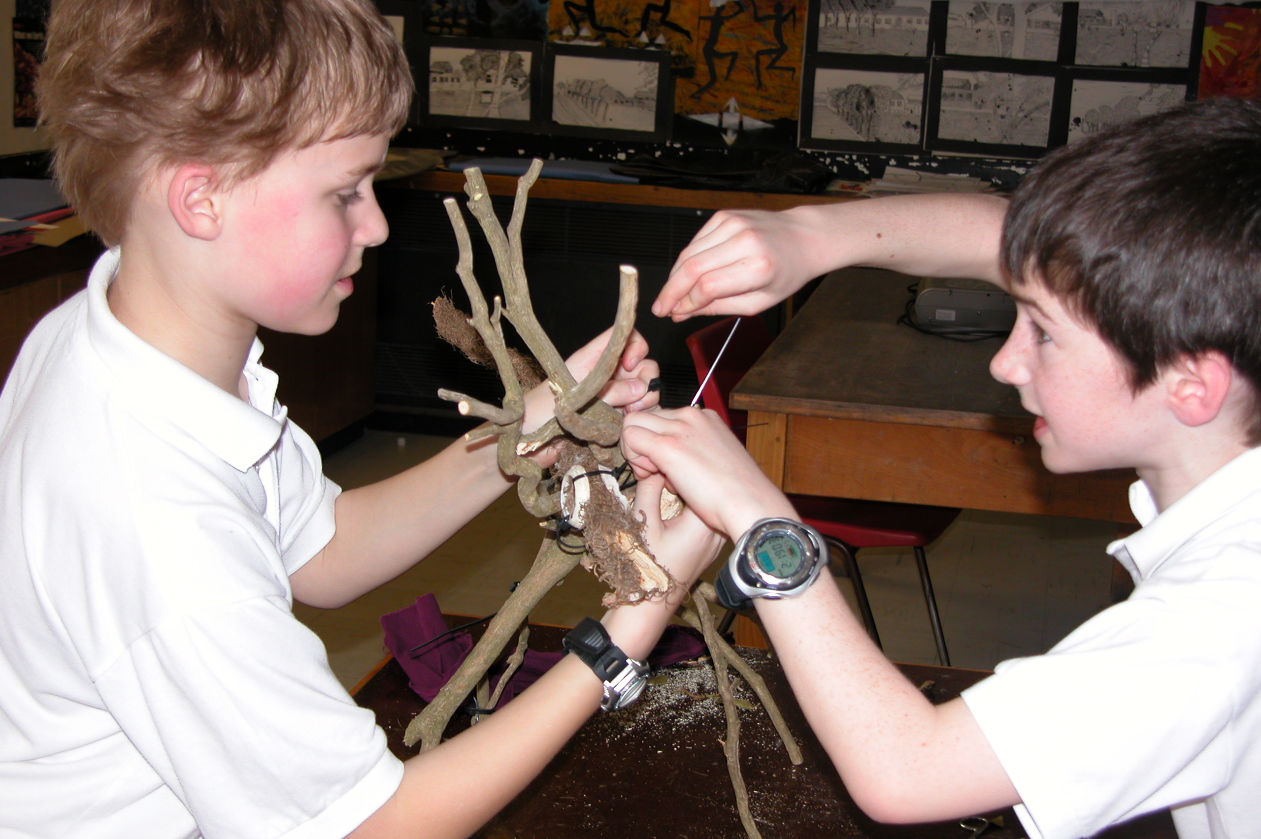 Sawston 2006: I ran workshops on bird sculptures with year 1 children and their families, and then used their work as inspiration for more ambitious animal sculptures with secondary age pupils. The resulting sculptures were on display at the primary school, and over half term at a family event.